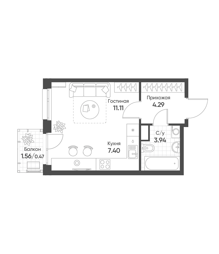 47.94 м², 5/18 этаж